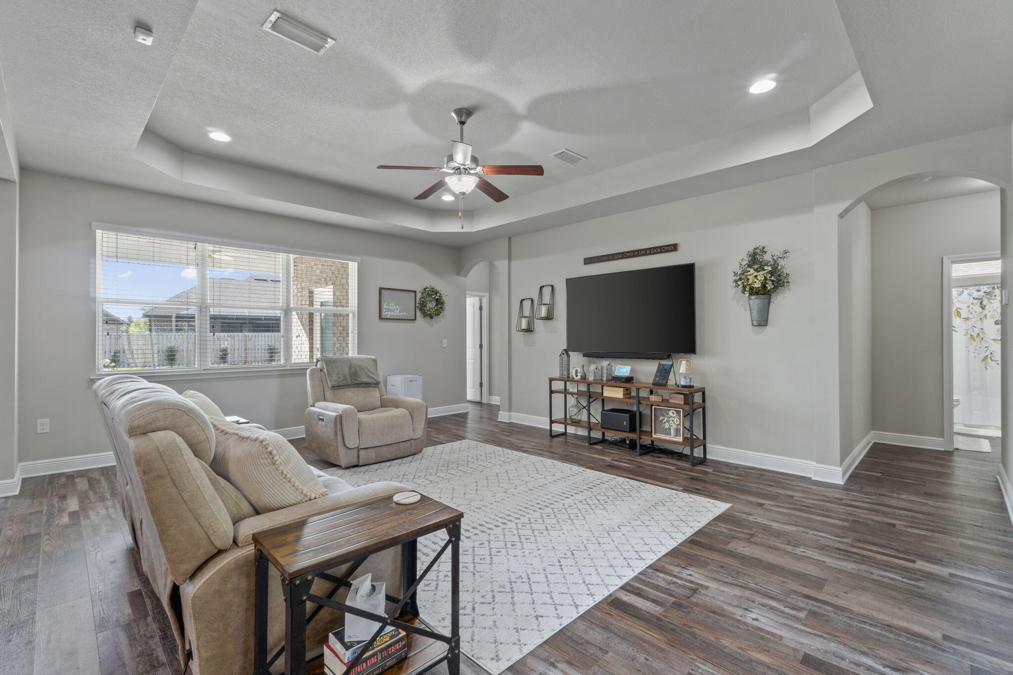 Discover your dream home in the highly sought-after Hammock Bay community! This stunning 5-bedroom, 3-bath, 2,485 sq ft residence blends luxury, comfort, and modern convenience--perfect for family living or effortless entertaining. From the moment you step inside, you're welcomed by grand 14-foot ceilings in the entryway and living room, creating a bright and spacious atmosphere. The open-concept floor plan is flooded with natural light and boasts quartz countertops, stainless steel appliances, updated light fixtures, and recessed can lighting for a sleek, contemporary feel. Whether you're hosting a large gathering or enjoying quiet nights in, the seamless flow of the main living area makes every moment enjoyable. This home comes loaded with upgrades--including smart home and enhanced safety features. The widened driveway and power-ready EV charging station add everyday convenience, while the garage features a MyQ automatic garage door system and durable epoxy flake floor coating. For added peace of mind, the home includes a 240V power supply with transfer switch and propane connection, making it generator-ready without being affected if there is a power interruption. Step into your very own resort-style backyard oasis with a custom inground concrete pool, built by Southern Blue, showcasing a beautiful cascading waterfall. The pool is surrounded by premium travertine decking that stays cool even on the hottest summer days. Relax, entertain, and enjoy endless hours outdoors in this private retreat. The beautifully maintained landscaping is supported by an eight-zone irrigation system for year-round curb appeal with minimal effort. Living in Hammock Bay means enjoying unrivaled community amenities. Experience the resort lifestyle with access to three pools, pickleball courts, tennis courts, basketball courts, and two well-equipped weight rooms. The main clubhouse offers a large entertainment stage and giant outdoor TV screen, perfect for movie nights, concerts, or gatherings with family and friends. Miles of walking trails, a dedicated dog park, and proximity to Freeport schools, parks, and shopping make this location truly unbeatable. This rare gem in Hammock Bay flawlessly combines modern upgrades, smart technology, and exceptional community amenities. Don't miss your chance to own one of the community's standout homes!